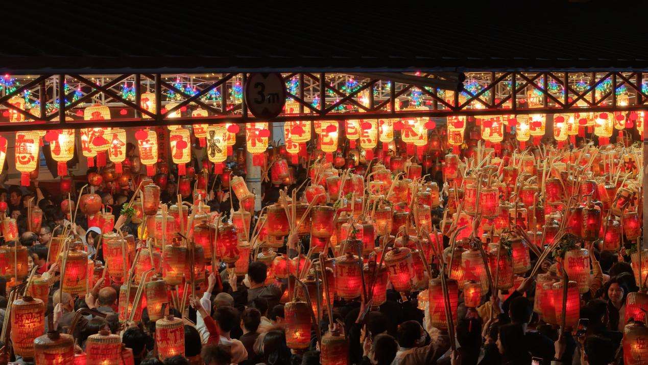 玄帝古庙前人头攒动,人们举灯祈福后,还会折取榕枝插于灯顶,寓意“有丁有禄”。73岁的林伯提着用了十年的油纸灯,带着举塑料花灯的孙子同行。他说:“灯不能灭,就像日子不能停。”