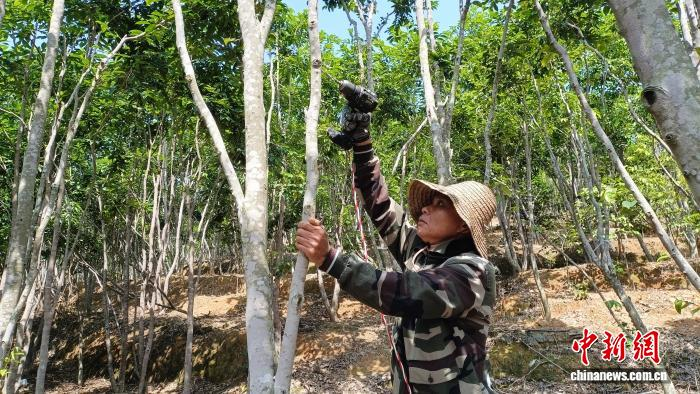 丝路新观察4月12日电(梁盛)广东茂名市电白区是闻名遐迩的“世界香都”,拥有1500多年的沉香种植和加工历史。在位于电白观珠镇的合利村,近年来通过嫁接技术人工种植沉香,大力发展沉香产业,年产值4.45亿元人民币(下同)。