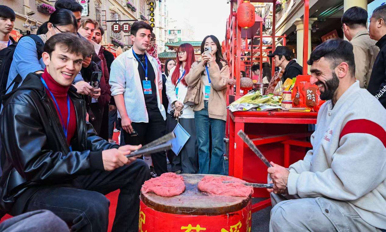 马年春节前夕,一场由广东省文化和旅游厅主办的“广东年味世界共享”活动在汕头举行,百位外籍嘉宾受邀体验长桌年宴,观赏非遗技艺。这也是斯蒂芬妮第一次在汕头体验中国年,“这里过年氛围很特别,好吃非常多!”她对琳琅满目菜式丰富的汕头年饭赞不绝口。来自埃及的艾哈迈德·埃尔森尼对汕头牛肉丸念念不忘,并打算买回去给家人朋友品尝。
