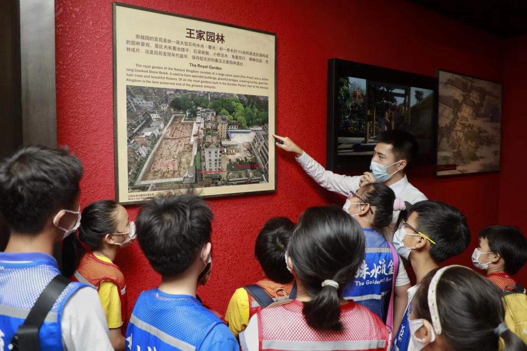 当天,客轮公司携手南越王博物院同步开展了"扬帆通海两千年"主题研学活动,通过水陆联游的方式,构建"跨时空"的人文对话,多角度展示南越王的历史故事,带给学生、家长们全方位的游学体验。活动以参观南越王博物院王宫展区+体验水上博物馆研学活动模式开展。25组亲子家庭,通过参观南越王博物院、聆听现场讲解,强化历史文化知识。之后一同搭乘南越王主题公交车前往码头登上"南海神号"游船,通过参观底舱主题博物馆,体验新颖有趣的历史小游戏,加深学生、家长们对广州海丝历史文化的认识。
