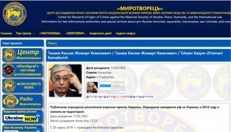 10月19日,多家媒体报道称,托卡耶夫总统的名字也出现在“和平缔造者”网站上。