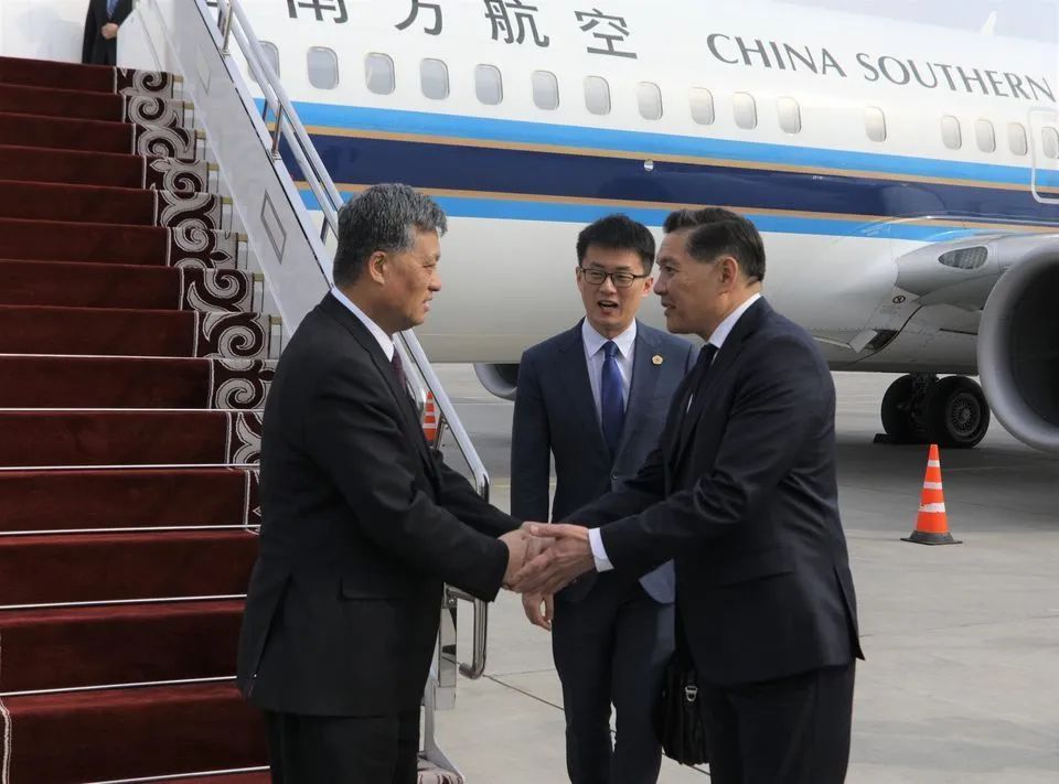 丝路新观察比什凯克3月30日电 当地时间3月30日中午,由中共中央政治局委员、新疆党委书记马兴瑞率领的中国新疆友好交流访问团飞抵吉尔吉斯斯坦首都比什凯克。吉尔吉斯斯坦第一副外长阿辛·伊萨耶夫和中国驻吉尔吉斯斯坦大使杜德文等前往玛纳斯国际机场迎接。