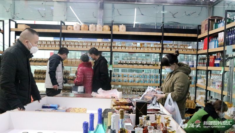 游客在巴克图中哈边民互市丝路文化商品城购物(2月21日摄)。王婷摄