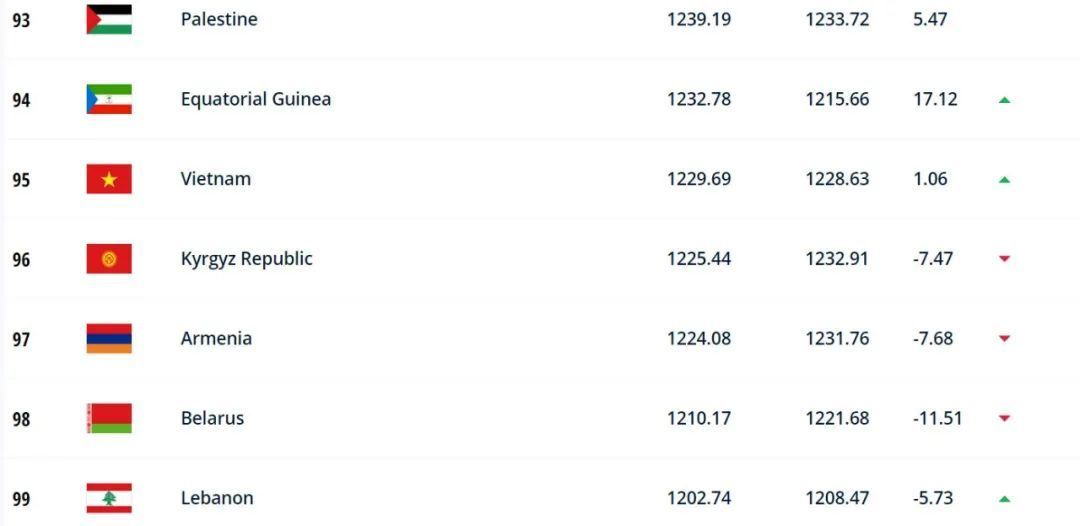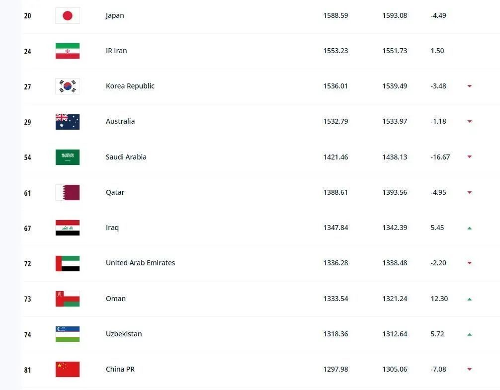 FIFA官方最新排名:阿根廷重回世界第1中国男足世界第81、亚洲第11