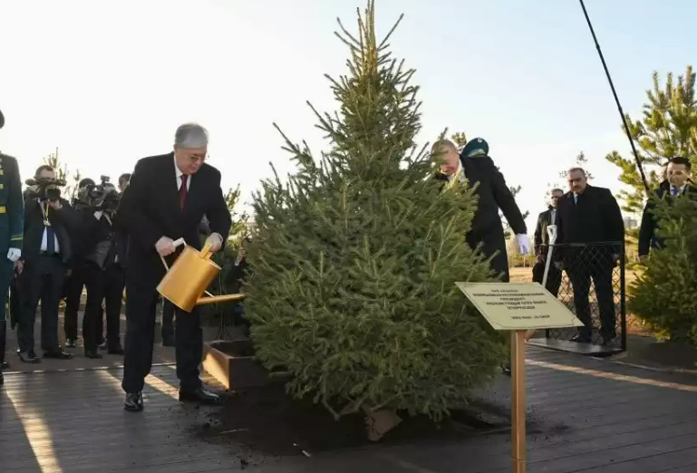 访问的当天,托卡耶夫和阿利耶夫还前往位于阿斯塔纳的植物公园合种了一棵树。