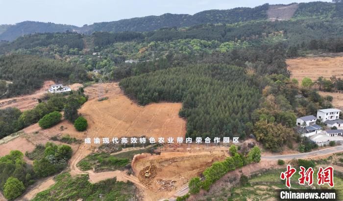 参访团一行走进荣昌区安富街道普陀村,沿着村里的沥青路向西,是四川内江隆昌市石燕桥镇三合村。两村交界处,“成渝现代高效特色农业带内荣合作园区”“双昌智慧猪场”几个大字招牌矗立在丘陵山头。