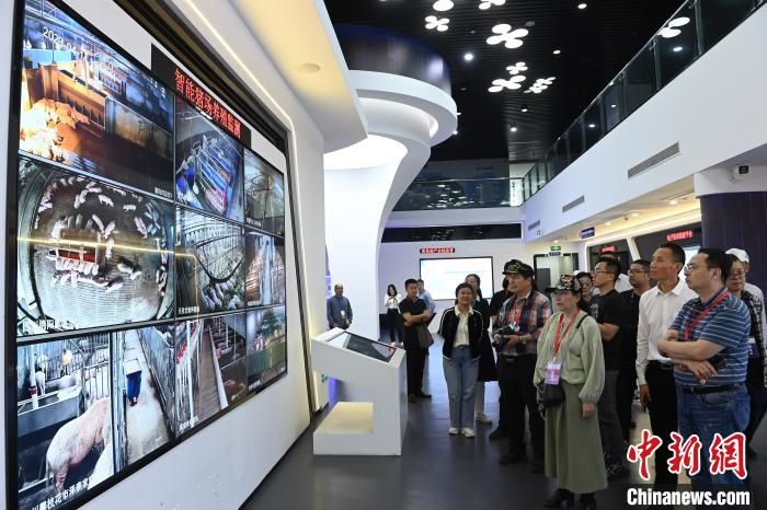 图为重庆荣昌区国家级生猪大数据中心内的智能猪场养殖监测系统引起参访团关注。 陈超摄