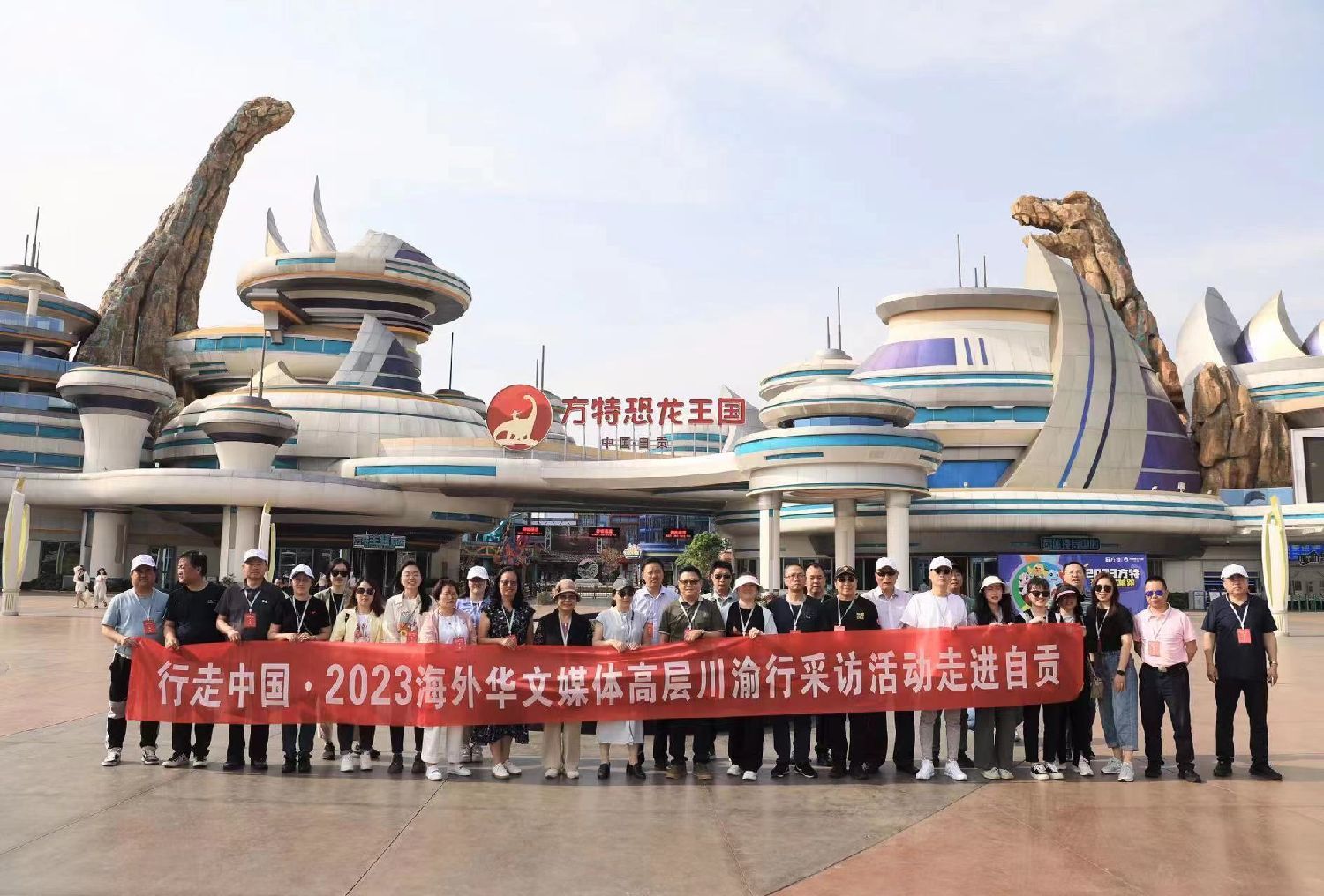 15日至17日,中国新闻社联合川渝两地统战部门和宣传部门组织的“行走中国·2023海外华文媒体高层川渝行”参访团走进“恐龙之乡”四川自贡。来自美国、加拿大、比利时等21个国家的28家主流华文媒体高层,探访自贡恐龙博物馆、自贡方特恐龙王国和仿真恐龙设计相关企业,了解恐龙产业如何从自贡“走向”世界。
