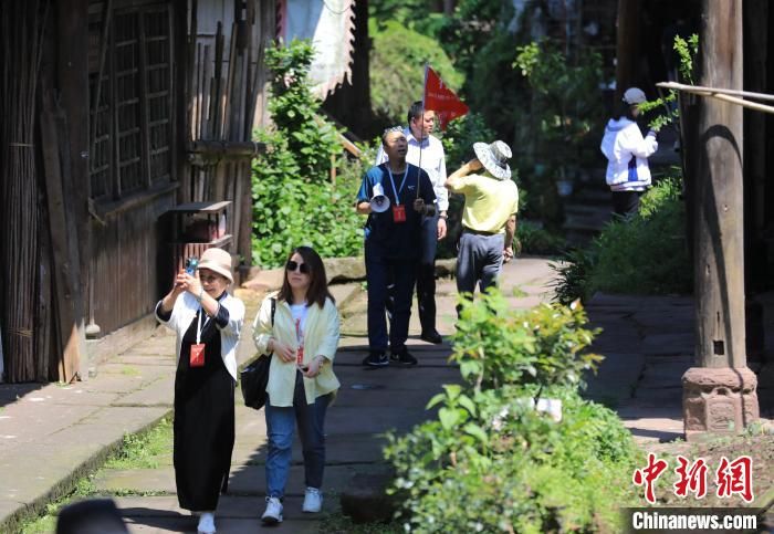海外华文媒体参访团行走在望鱼古镇。 王磊 摄