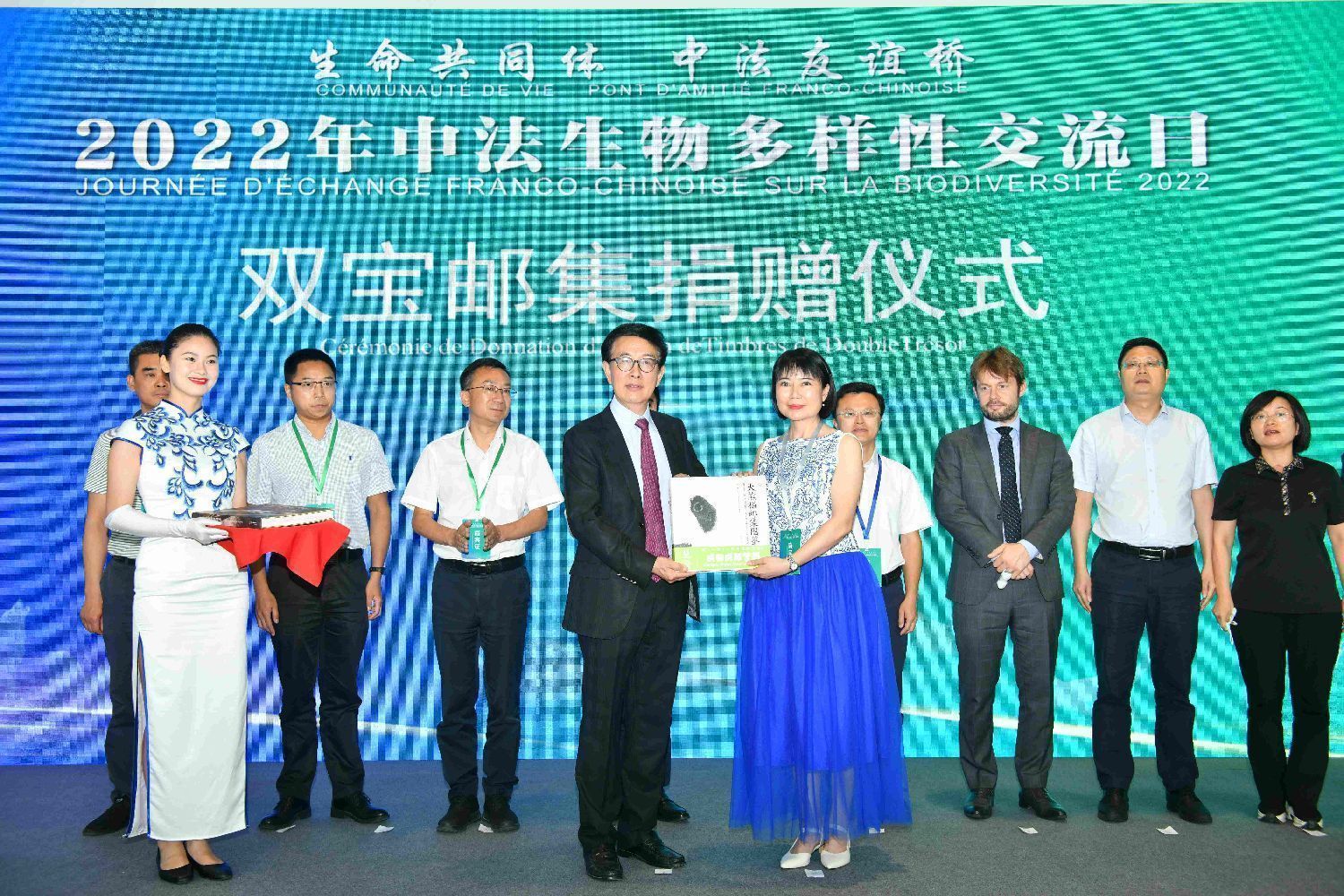 ▲2022年中法生物多样性交流日上,薛康赠送《大熊猫邮集图鉴》