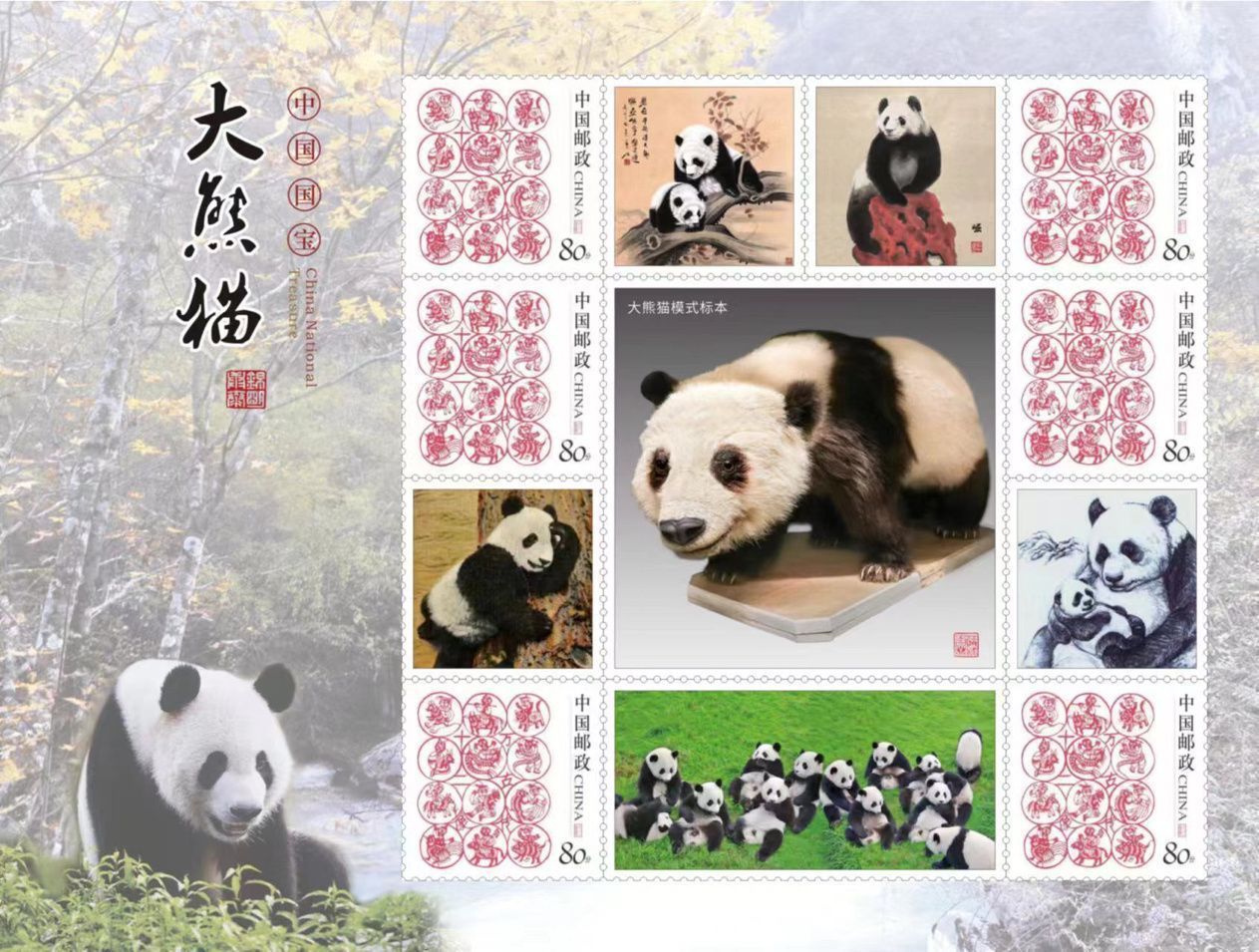 大熊猫作为中国最有亲和力的文化使者和友谊使者,150多年前在世人面前一亮相,便惊艳了世界邮政史和收藏界。在不同的历史时期,每当大熊猫走出国门,无论是作为国礼还是科学研究抑或旅居,所到之国都无一例外通过发行大熊猫邮票、首日封、明信片等多种形式,将吉祥物大熊猫永久地镌刻在方寸之间,留在各个国家的书信往来中,使得大熊猫深深地驻扎在了人们心中。