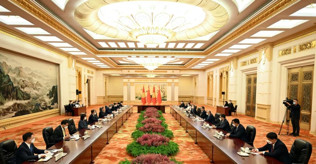中国全国政协主席王沪宁会见吉尔吉斯斯坦总统扎帕罗夫。卡巴尔国家通讯社发