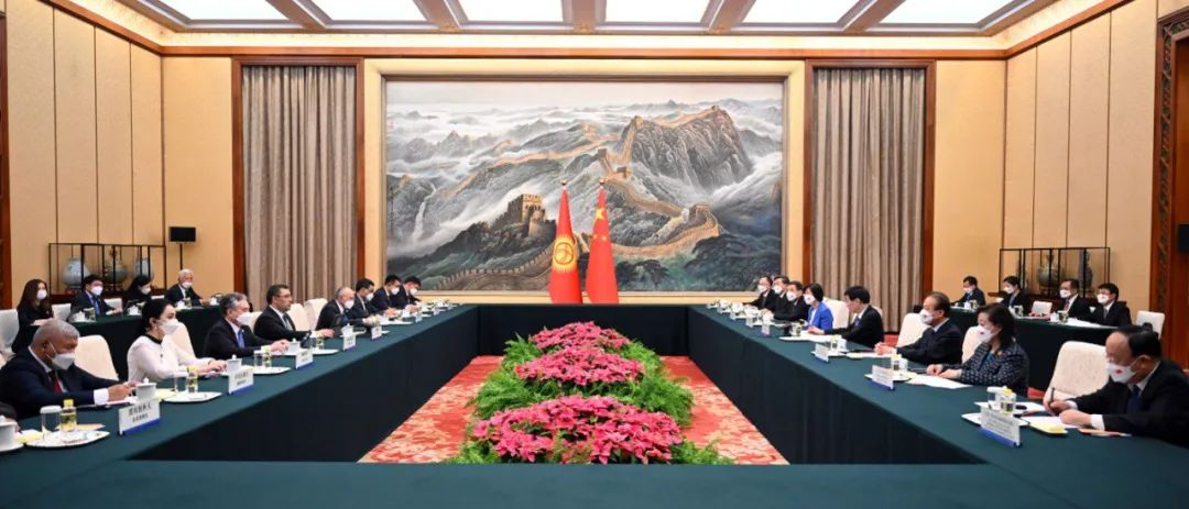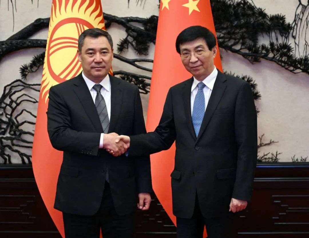 中国全国政协主席王沪宁19日在北京会见吉尔吉斯斯坦总统扎帕罗夫。