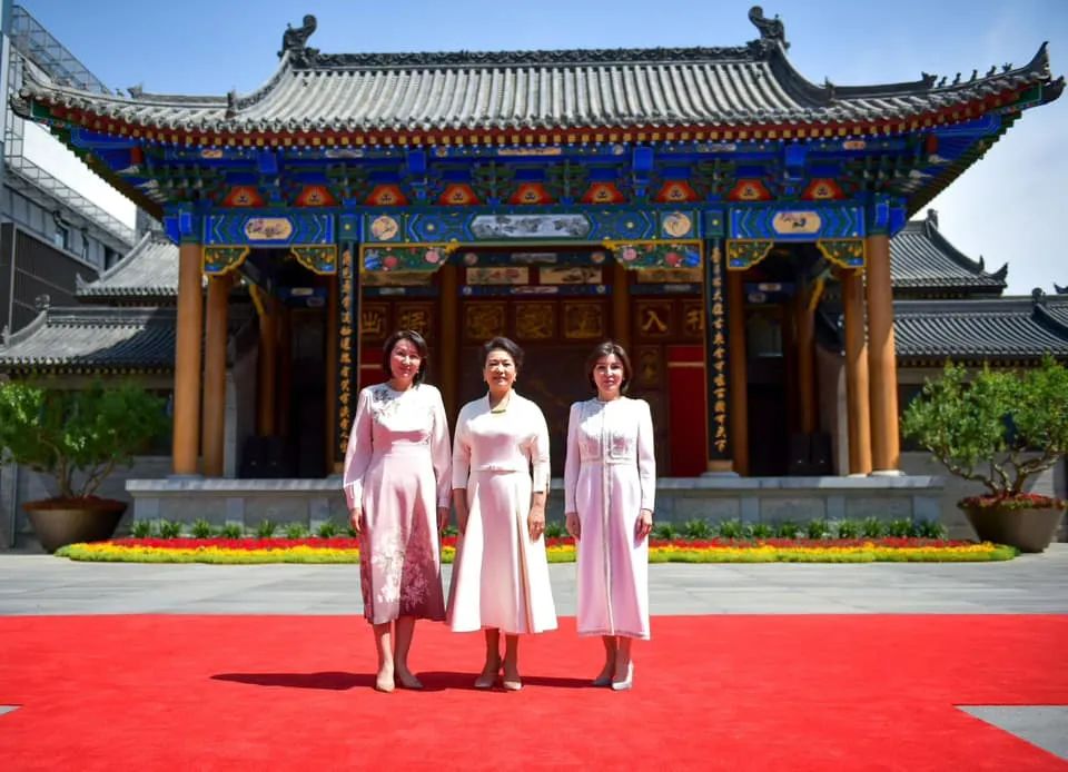 5月19日上午,国家主席习近平夫人彭丽媛邀请出席中国-中亚峰会的吉尔吉斯斯坦总统夫人扎帕罗娃、乌兹别克斯坦总统夫人米尔济约耶娃共同参观西安易俗社。