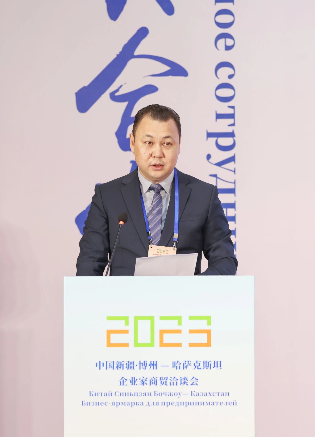 哈萨克斯坦中国贸易促进协会会长哈那特·拜赛克致辞。