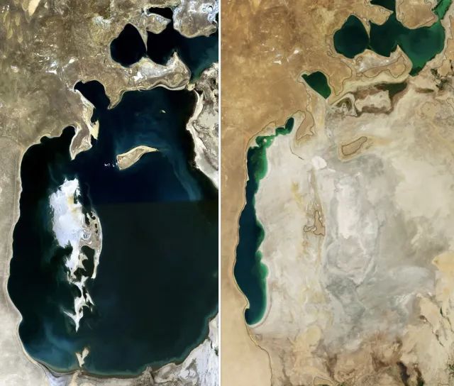 1989年和2014年的咸海(图源地球知识局)