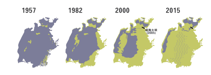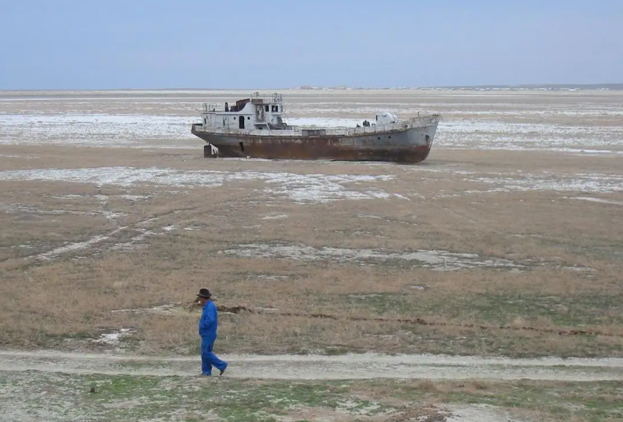 咸海曾经是世界第四大湖泊。咸海的快速萎缩给中亚国家带来不小挑战。咸海危机的主要原因是20世纪50年代至80年代中期湖泊周围粮棉生产灌溉的过度扩张。这种极度需求破坏了该地区的生态平衡,流入湖泊的水量大幅减少,导致湖泊水生生态系统的退化。大面积的湖底成为裸地和盐土或被盐壳覆盖,易形成多发性、高污染的盐尘暴。本地居民的健康和福祉受到影响,患白血病、肾病、支气管炎和哮喘等病的比例显著升高。