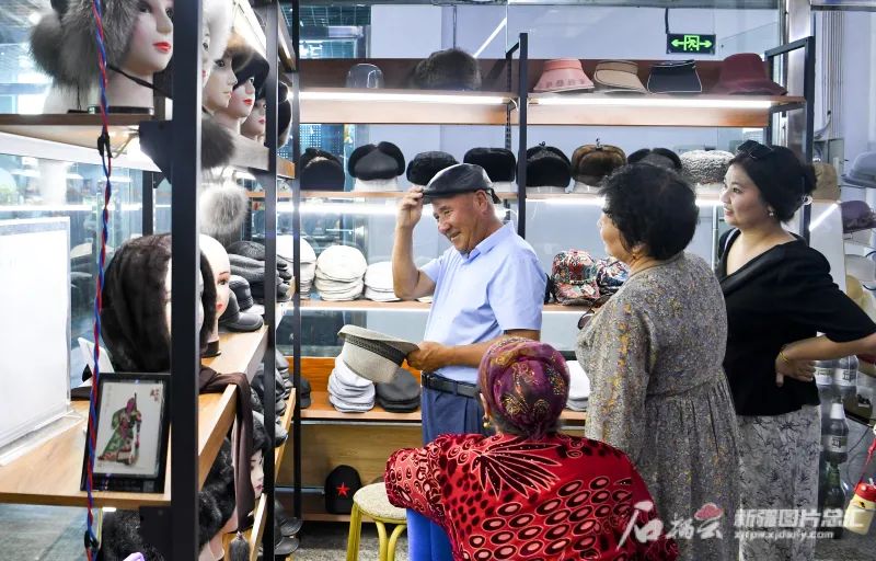 7月21日,国外游客在边民互市塔城丝路文化商品城选购商品。汤永摄