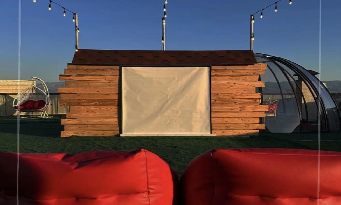 天台有原顶凉亭,也有适合露天观影的一切设备,只需要选择心仪的房间,即可享受舒适的观影体验。