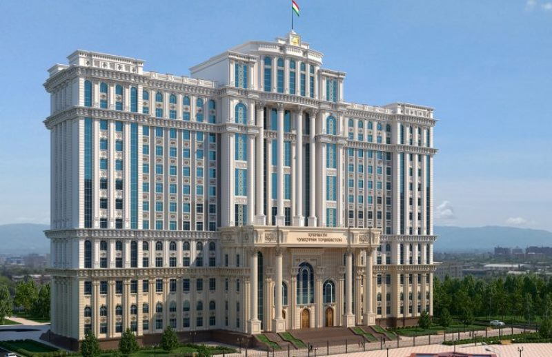 政府办公大楼坐落于杜尚别市中心的鲁达基和索莫尼大街,主楼13层,配楼11层。