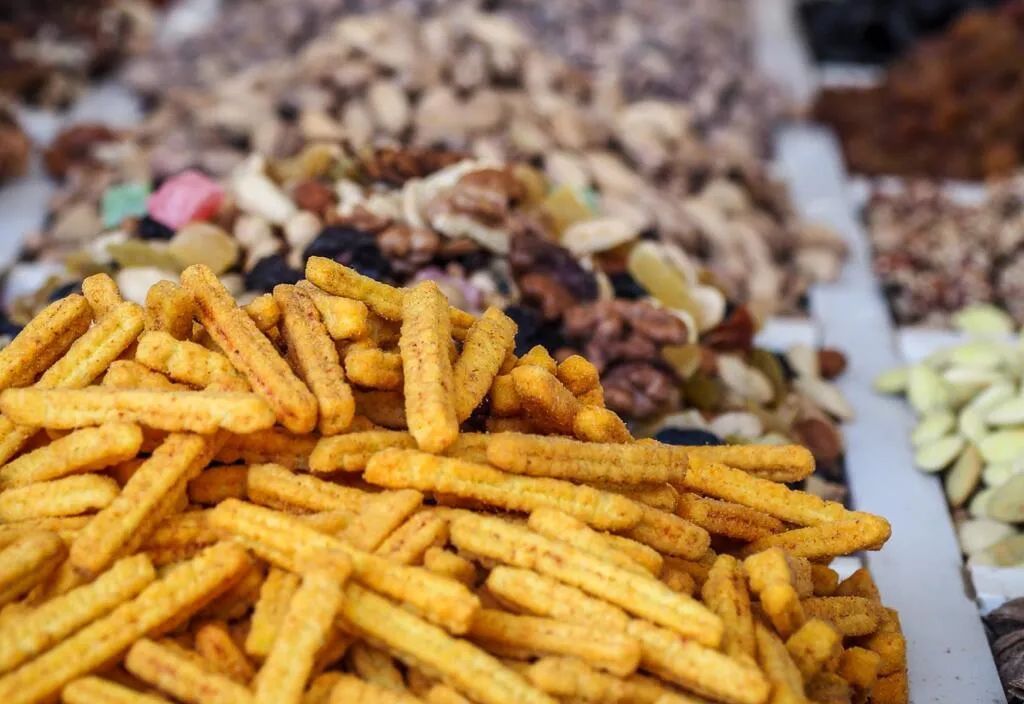土库曼斯坦坚果和干果便宜且很受国内外游客欢迎。坚果有咸口、甜口或加香料的选择。除了常见的干果,还可以找到甜瓜干、西瓜干、柿子和桑葚干,也有裹着巧克力的干果。
