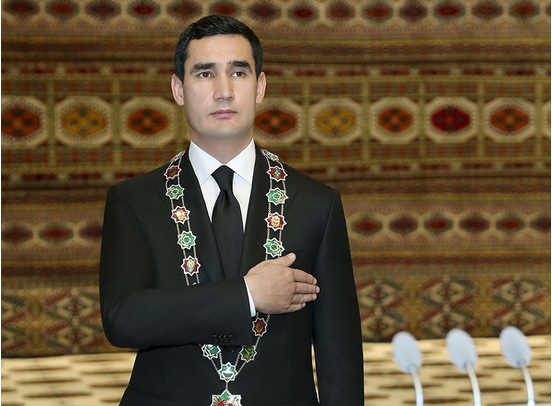 当地时间2022年3月19日,土库曼斯坦新任总统谢尔达尔·别尔德穆哈梅多夫正式宣誓就职。