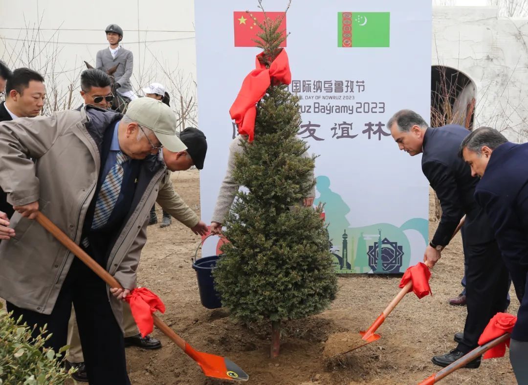 在这喜庆祥和的日子里,土库曼斯坦驻华大使巴拉哈特·杜尔德耶夫、中国马业协会会长贾幼陵、农业农村部对外经济合作中心副主任李志平、北京西坞乡村马术俱乐部董事会主席韩小京等同各国友人一起种下一棵棵寓意绵长久远的友谊之树。