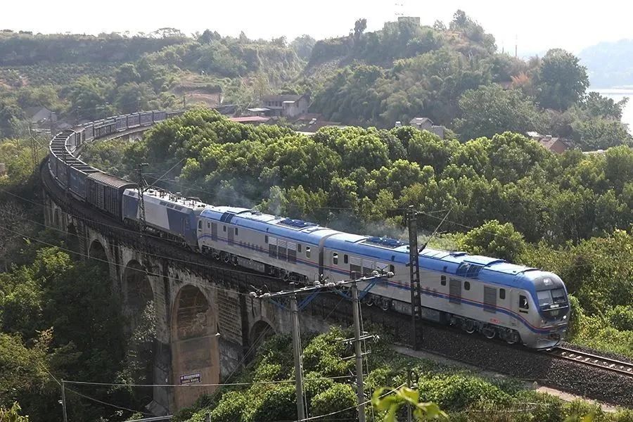 出口土库曼斯坦的干线货运内燃机车在王二溪大桥试运(图片来自中车资阳公司)