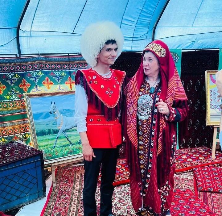前来“民族村”的客人能够在此熟悉不同民族的文化。在领事馆的支持下,土国侨民用三座带有民族色彩的毡房重现了土库曼农庄的场景。