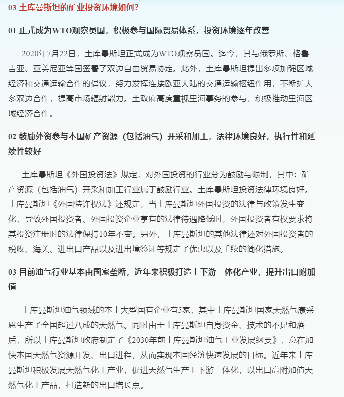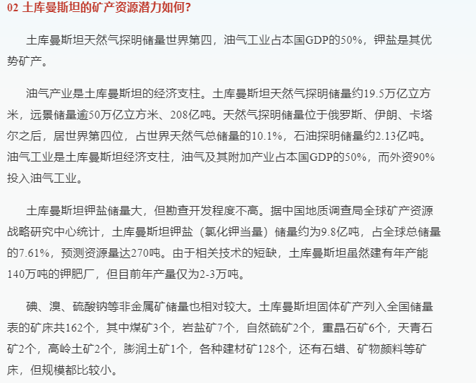 今天为大家介绍土库曼斯坦的矿业投资前景。