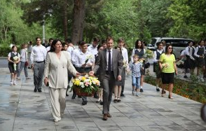俄罗斯驻阿什哈巴德大使馆代表、俄土联合普希金中学的学生、派驻土库曼斯坦的外国大使参加了活动,向普希金公园的纪念碑鲜花。