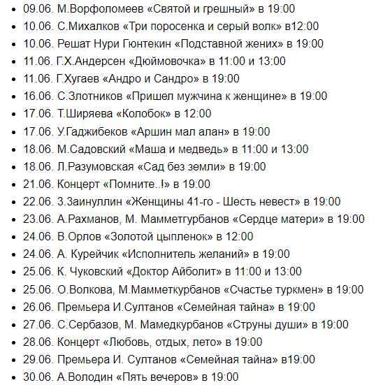 位于阿什哈巴德的普希金俄语剧院邀请观众来看剧啦~已更新6-7月剧目:
